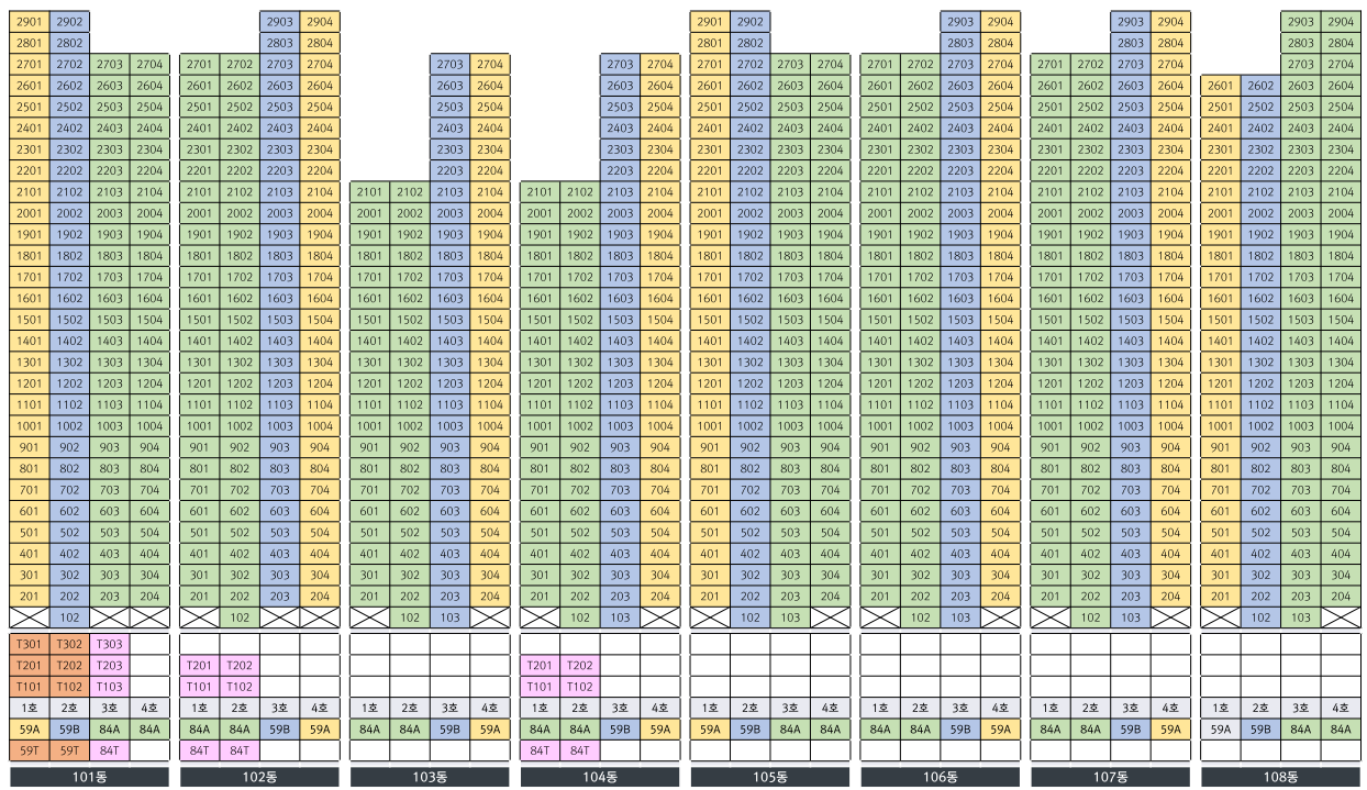 101동 부터 108동 까지
